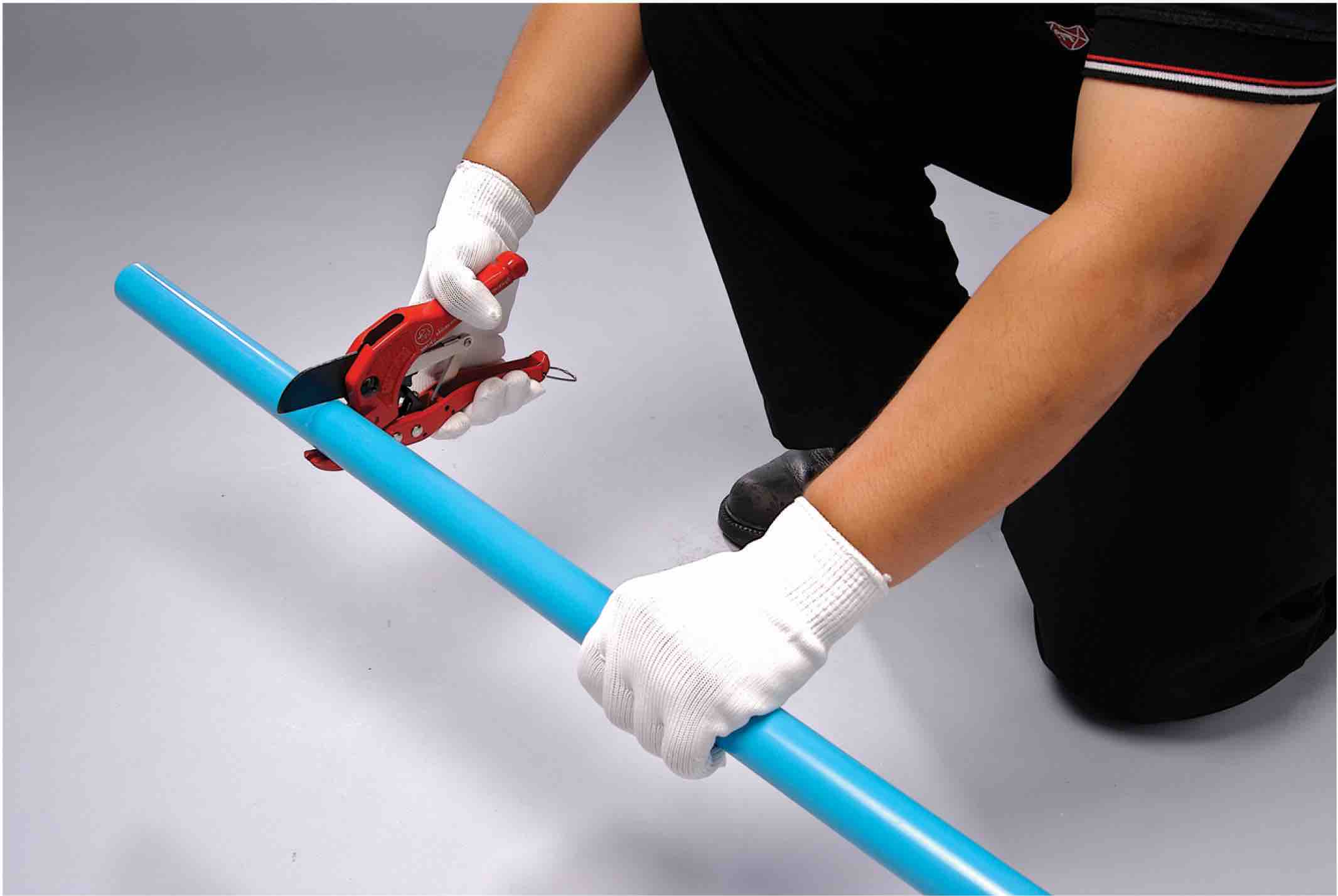ตัดท่อให้ได้ฉากและระยะตามต้องการโดยใช้เลื่อยตัดโลหะหรือกรรไกรตัดท่อ