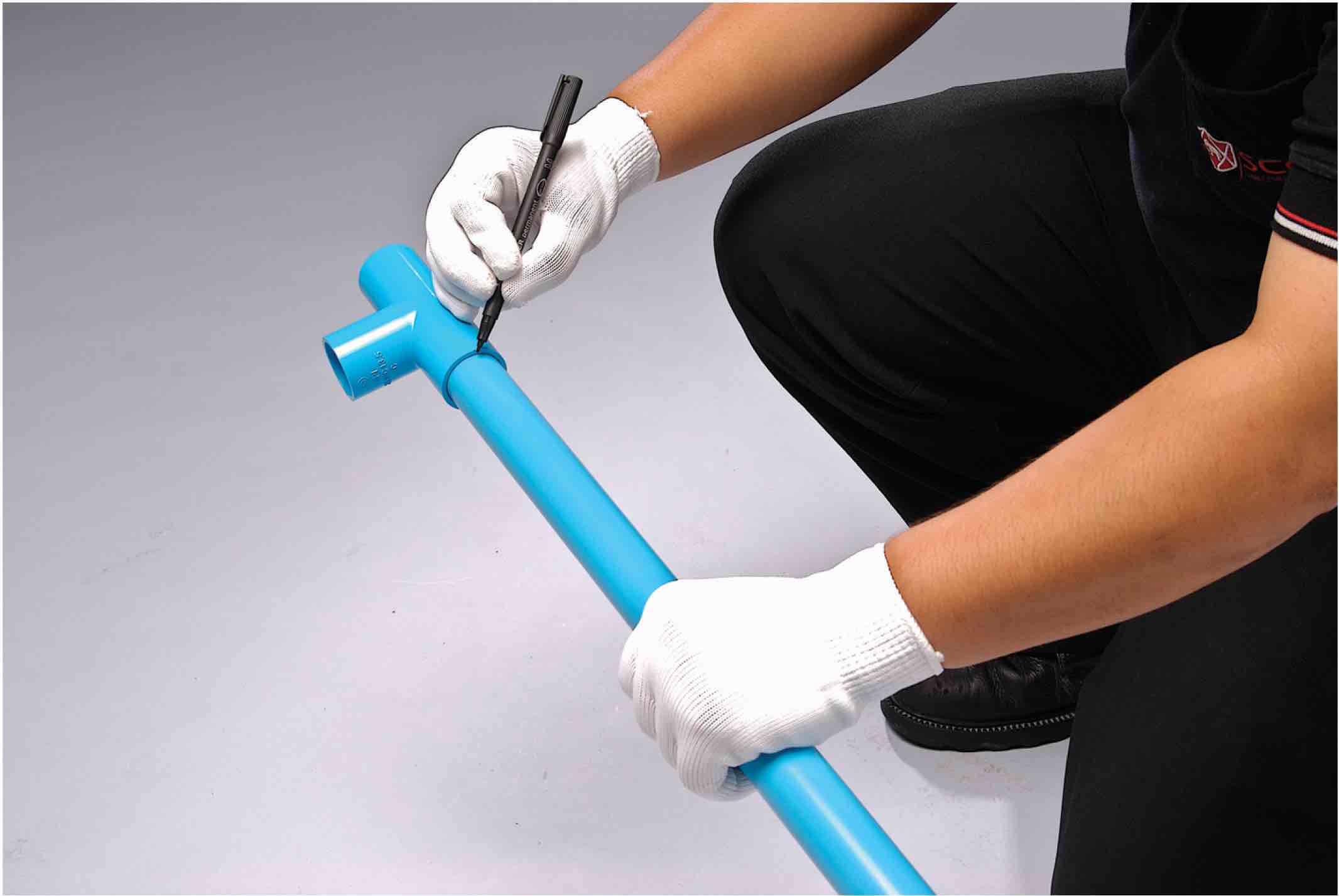 สวมปลายท่อเข้ากับข้อต่อแล้วกดเข้าไปจนถึงเครื่องหมายที่ทำไว้จากนั้นกดท่อที่ต่อไว้อีก 10-15 วินาที