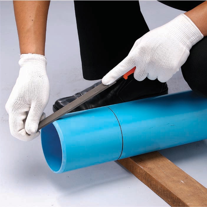 ใช้ตะไบละเอียดแต่งรอยตัดให้เรียบและลบมุมปลายท่อโดยรอบ มีความลาดเอียงประมาณ 15 องศา
