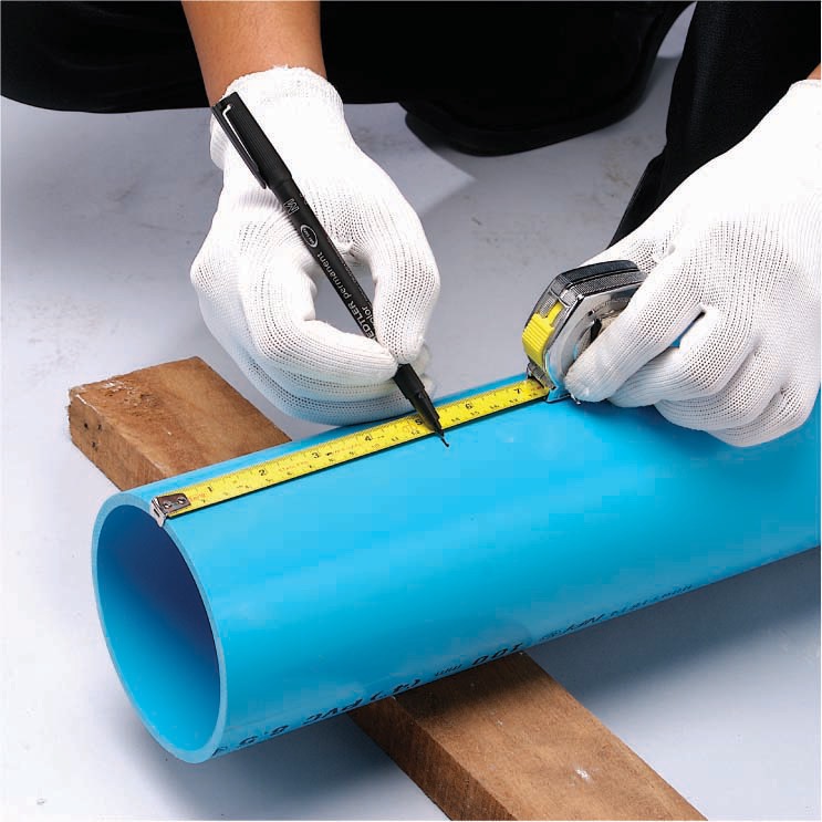 กรณีที่ต้องตัดท่อ ให้ทำเครื่องหมายระยะ ที่ต้องการตัด ให้ได้ฉากกับแนวแกนท่อ