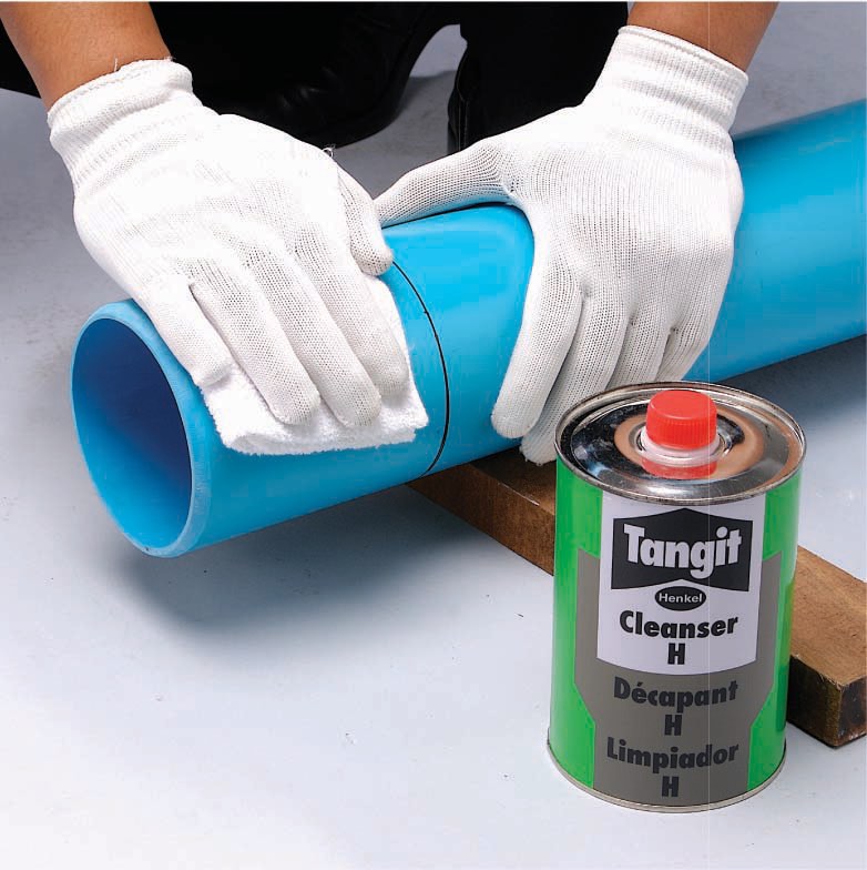 ใช้น้ำยาทำความสะอาดท่อพีวีซีเอสซีจีทำความสะอาดปลายท่อที่จะสวมใส่และบริเวณแนวร่องแหวนยาง