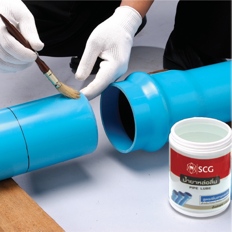 ทาน้ำยาหล่อลื่นเอสซีจี (Pipe Lube) บริเวณปลายท่อ และด้านในหัวต่อ