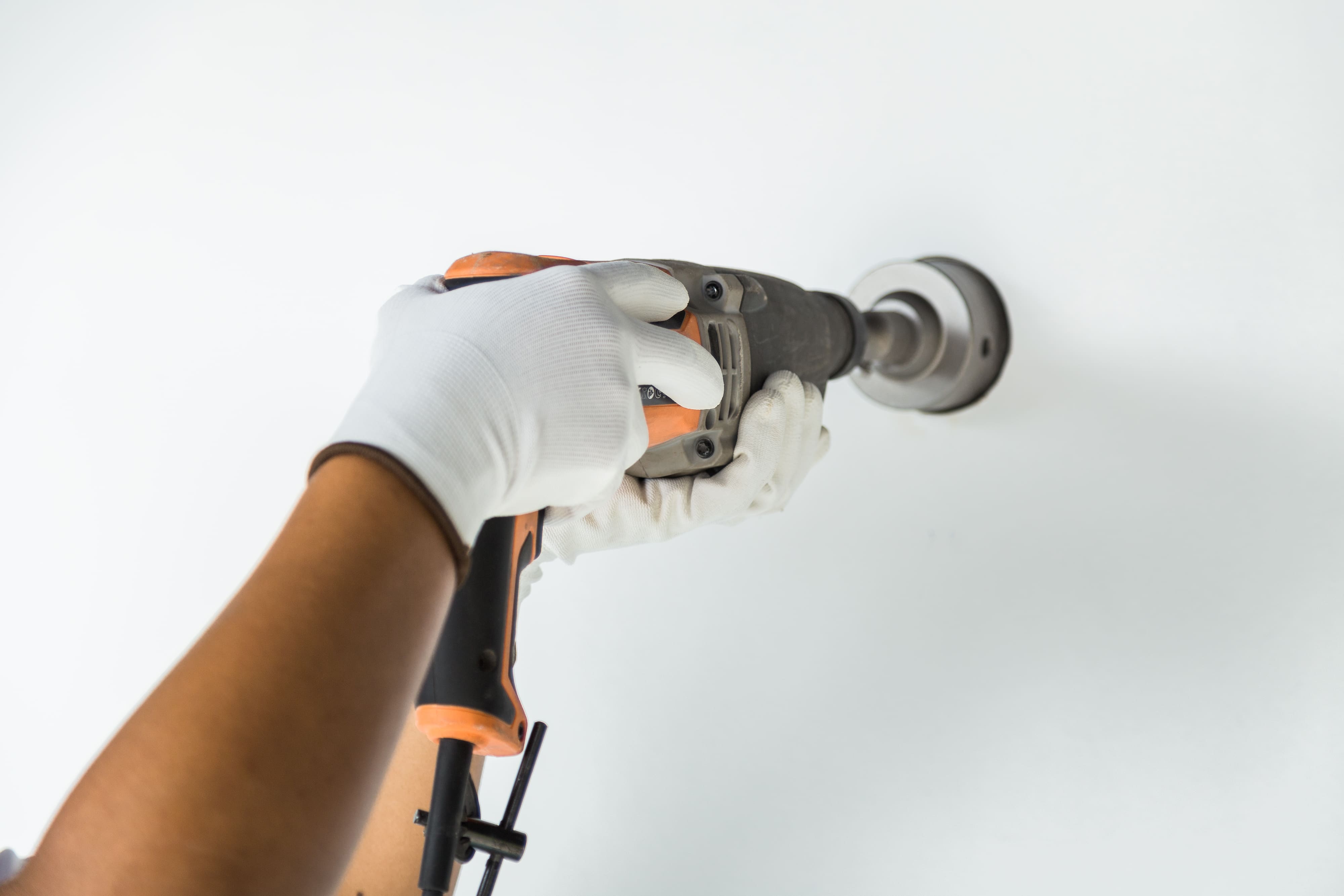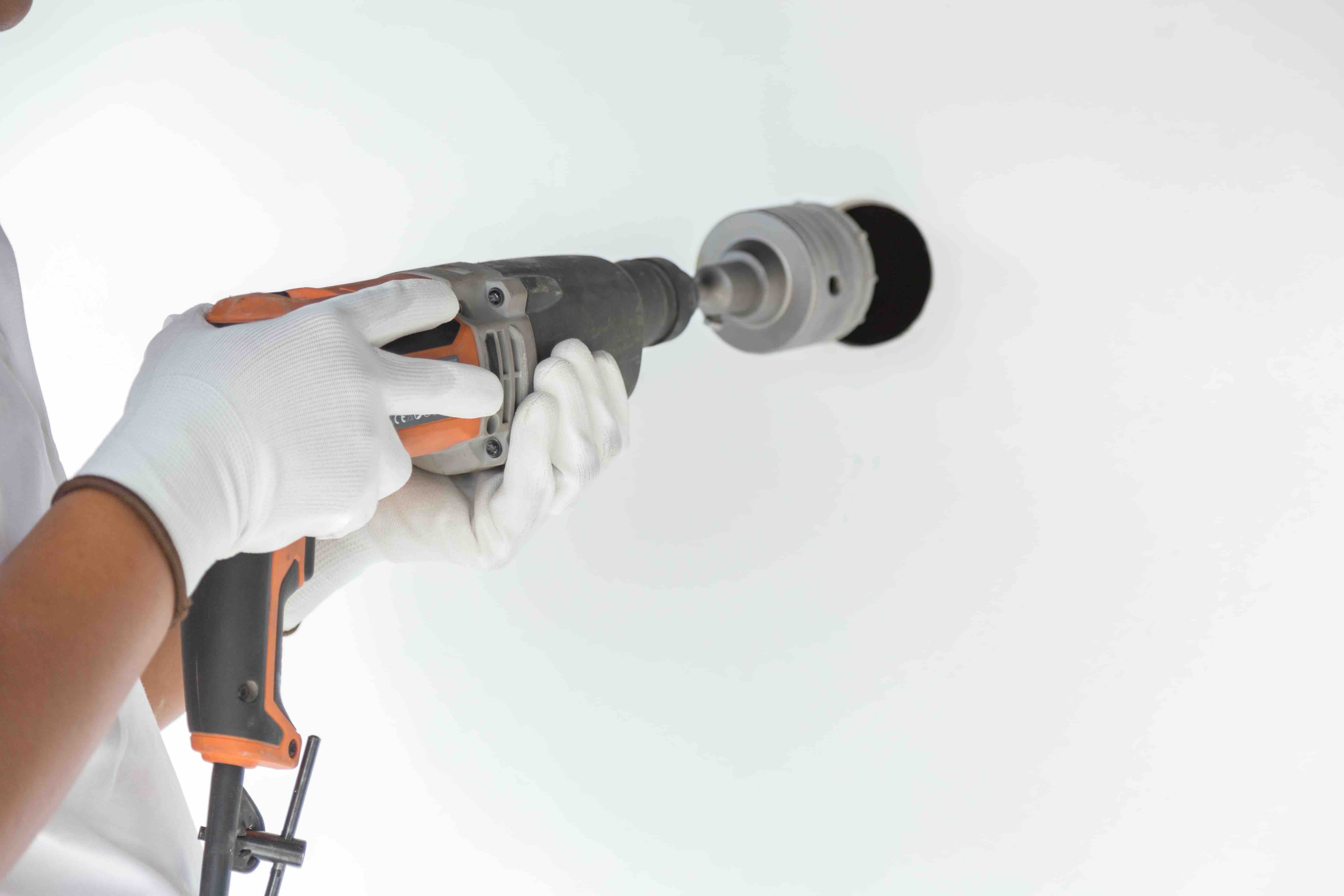 ใช้สว่านเจาะผนังเพื่อฝังพุก