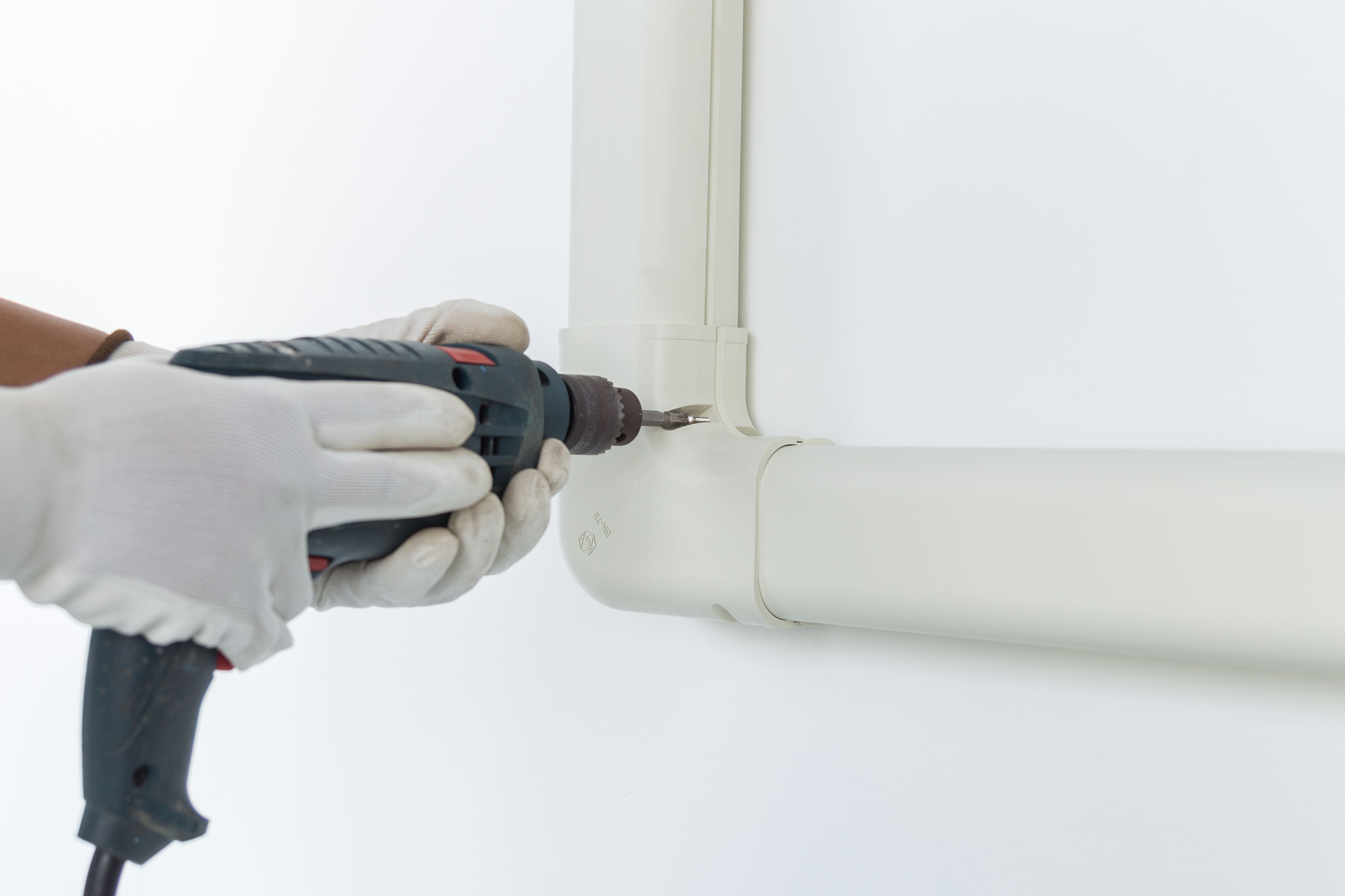 นำรางครอบท่อแอร์และข้อต่อชิ้นบนติดตั้งเข้ากับชิ้นล่าง