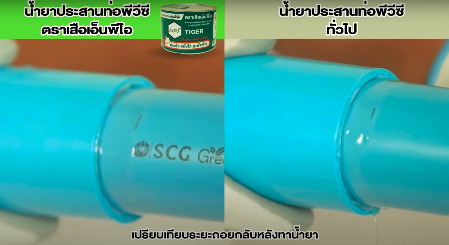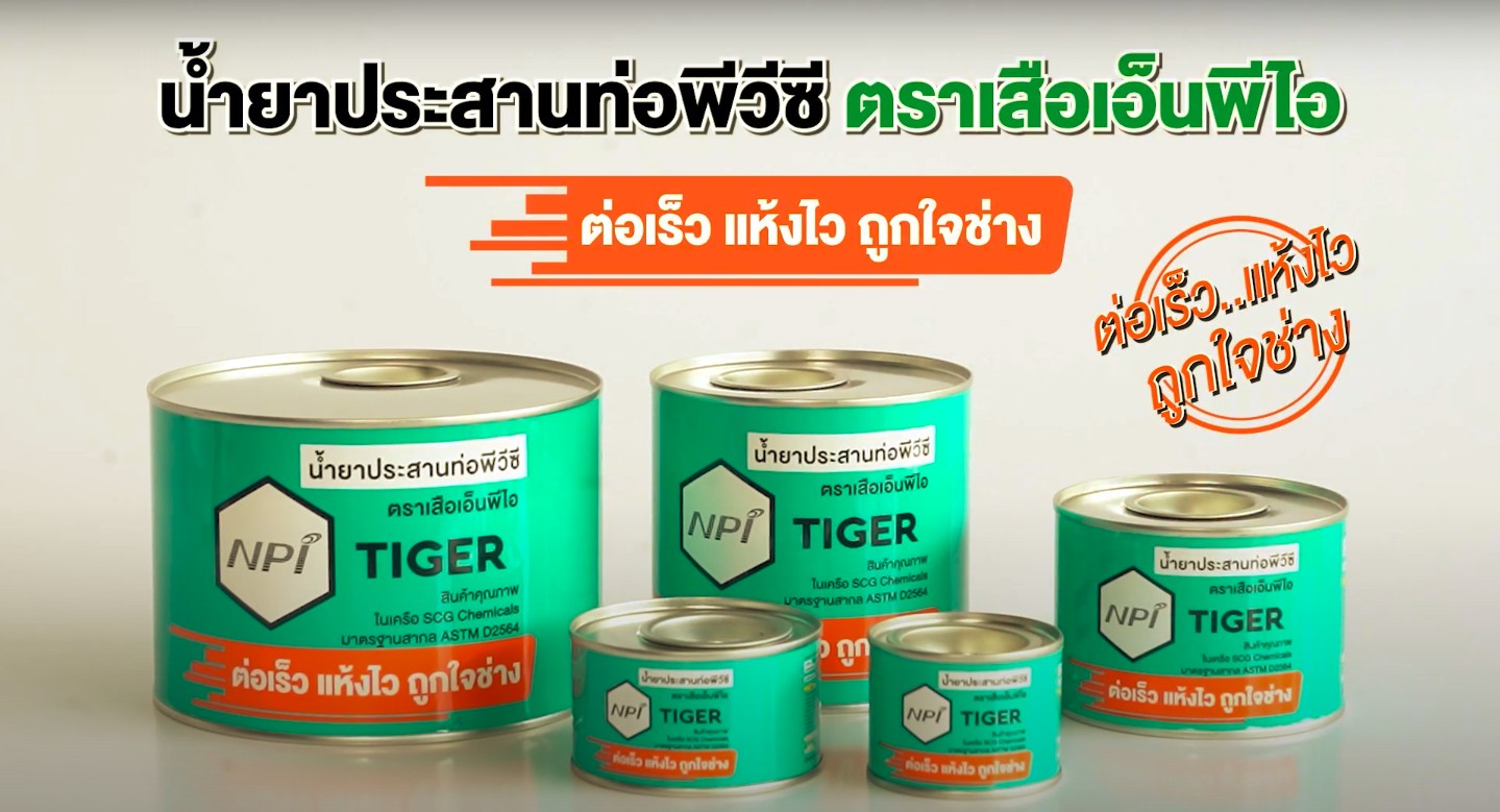 น้ำยาประสานท่อพีวีซี ตราเสือเอ็นพีไอ ตอบโจทย์การใช้งานด้วยคุณสมบัติ ทำละลายเร็ว แห้งไว ระยะถอยกลับน้อย จบงานไว ถูกใจช่าง
