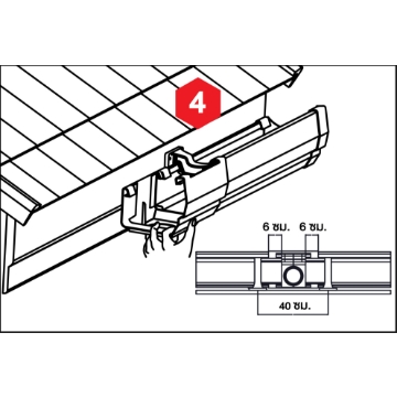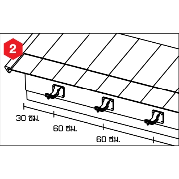 ติดตั้งตะขอแขวนราง โดยรุ่นสมาร์ทให้ตะขอตัวแรกห่างจากมุมเชิงชายไม่เกิน 30 ซม.และรุ่นเดอลุกซ์ไม่เกิน 20 ซม. และตัวต่อไปห่างกันเฉลี่ยไม่เกิน 60 ซม.