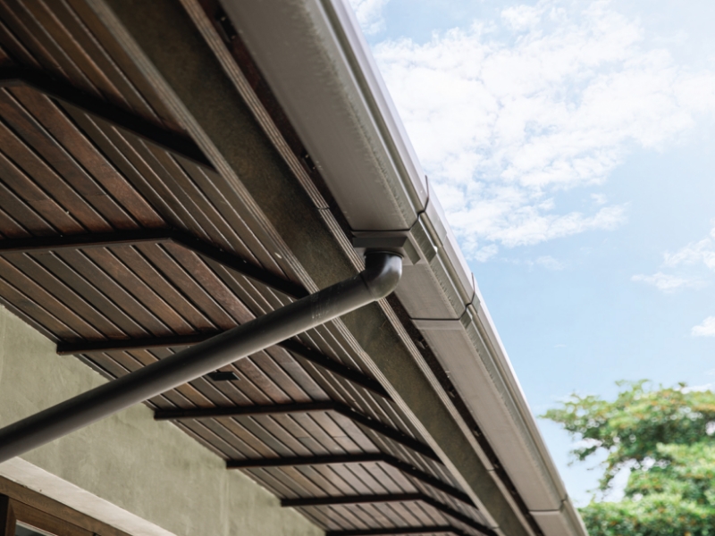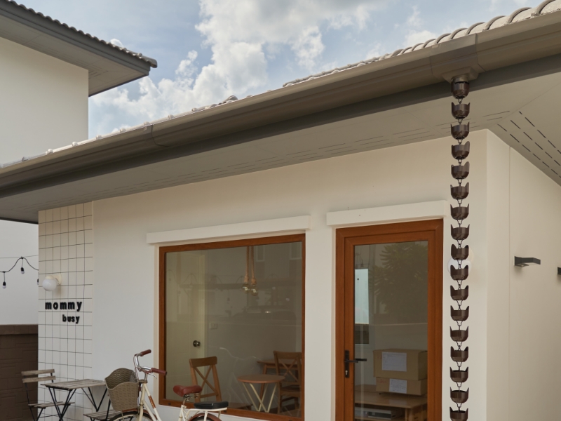 สวยครบทั้งหลัง ด้วยระบบระบายน้ำจากหลังคา พร้อมชุดระบายน้ำระเบียง และโซ่ระบายน้ำฝนไวนิล